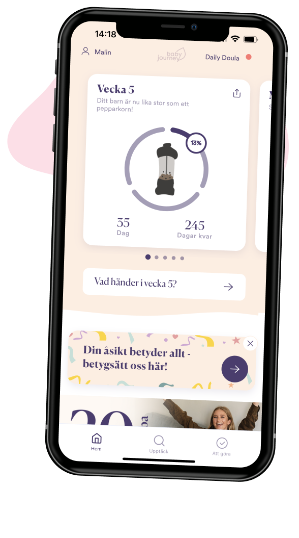 Vi går side om side med dig fra plusset på testen til fødslen og indtil barnet er to år. Med alt fra ugeopdateringer til tjeklister og artikler støtter og opmuntrer vi dig på babyrejsen.