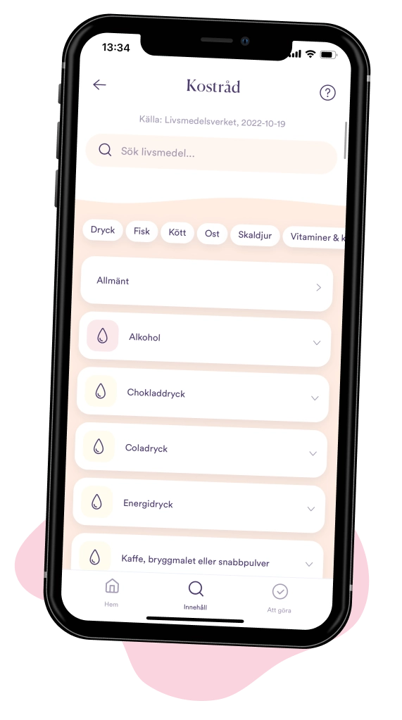 You will find carefully crafted dietary advice from the Finnish Food Agency in the app. This ensures that you have access to reliable and science-based advice on nutrition and eating habits during pregnancy. This advice is important for the health of both you and your baby, and helps you make informed choices about your diet.