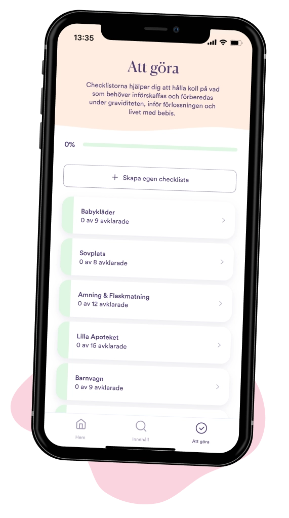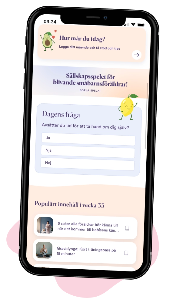 In the app you'll find lots of guides covering everything from pregnancy, childbirth and the early days with baby. With the help of healthcare professionals, we have gathered valuable information and practical advice for both parents-to-be and new parents. With simple step-by-step guides and insights on baby development, you'll find everything you need to know.